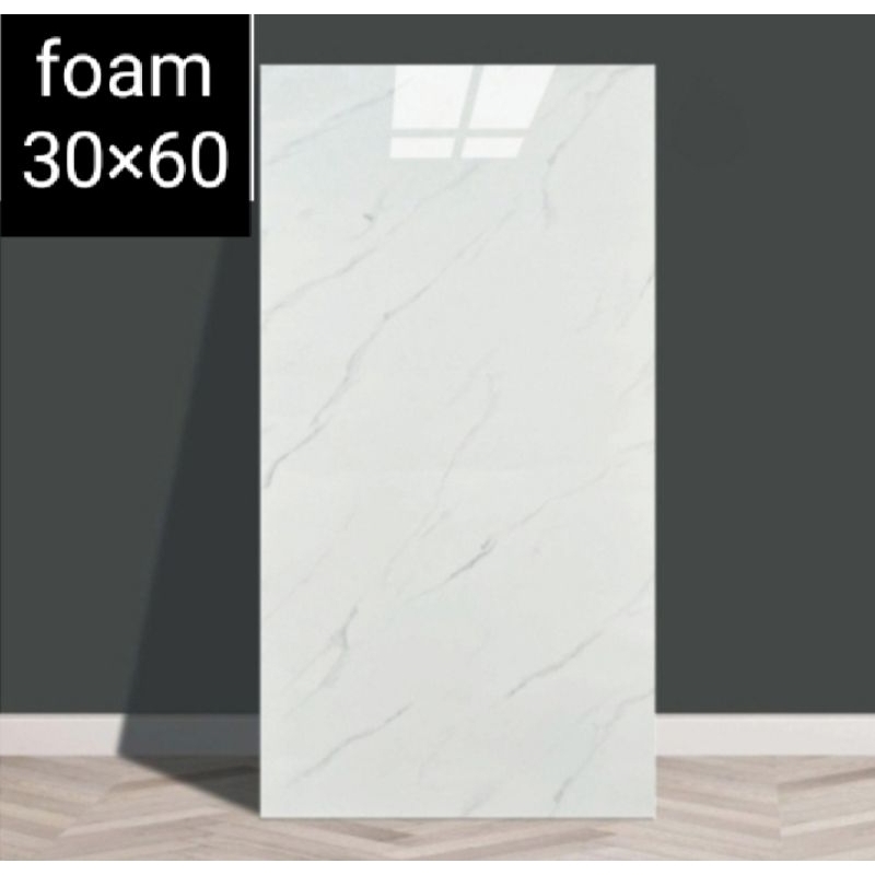 (12 pcs)Wallpaper Dinding PT XPE SXP Foam Sticker Marmer Glossy 30×60cm Cabinet Marble
