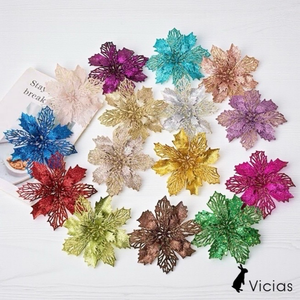 Hiasan Bunga Kastuba insettia Ornamen Dekorasi hon Natal Christmas