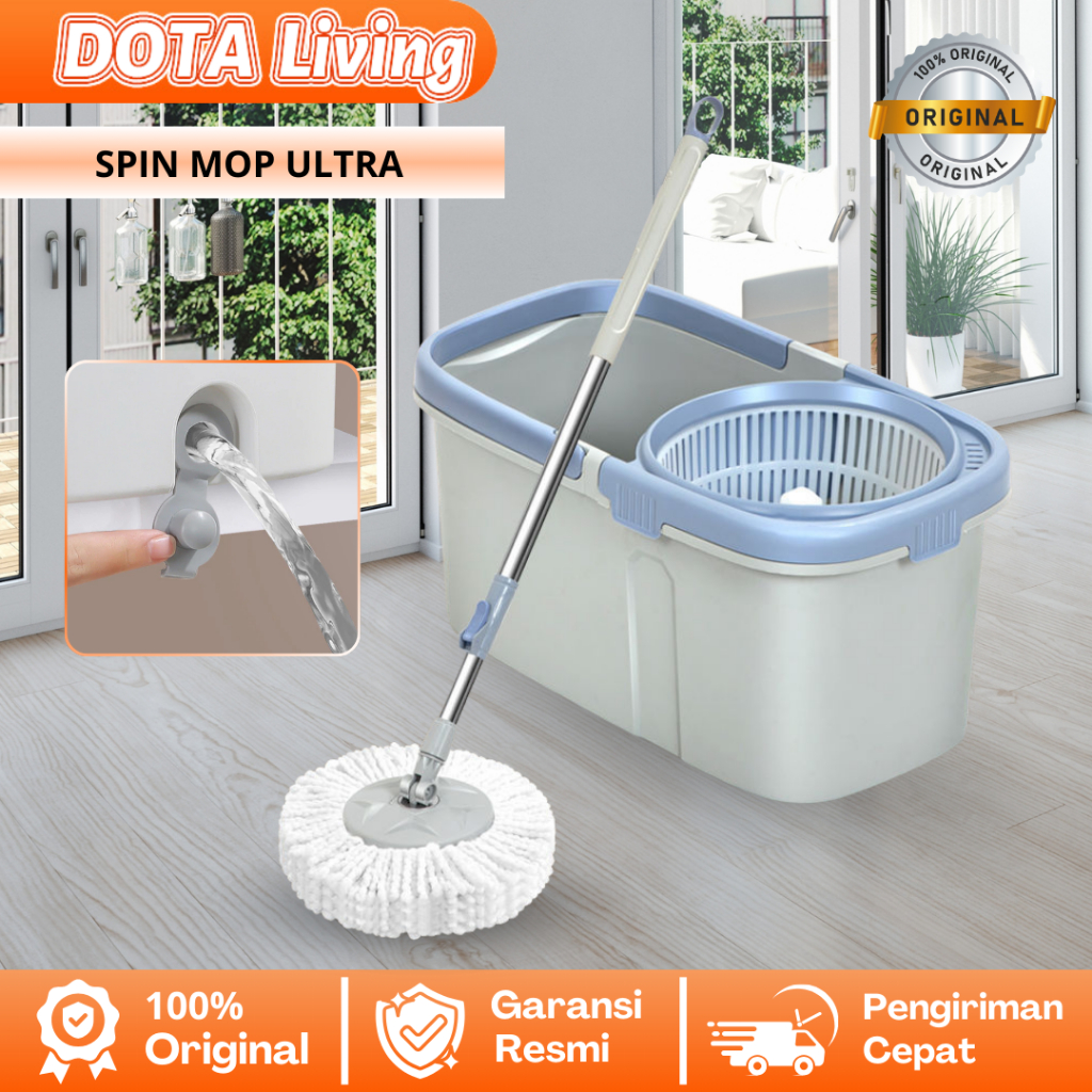 DOTA Living Set Alat Pel Lantai Stainless Mop Dengan Ember Pencuci Putar Hand Pressure Rotary 360° FREE KAIN PEL CA