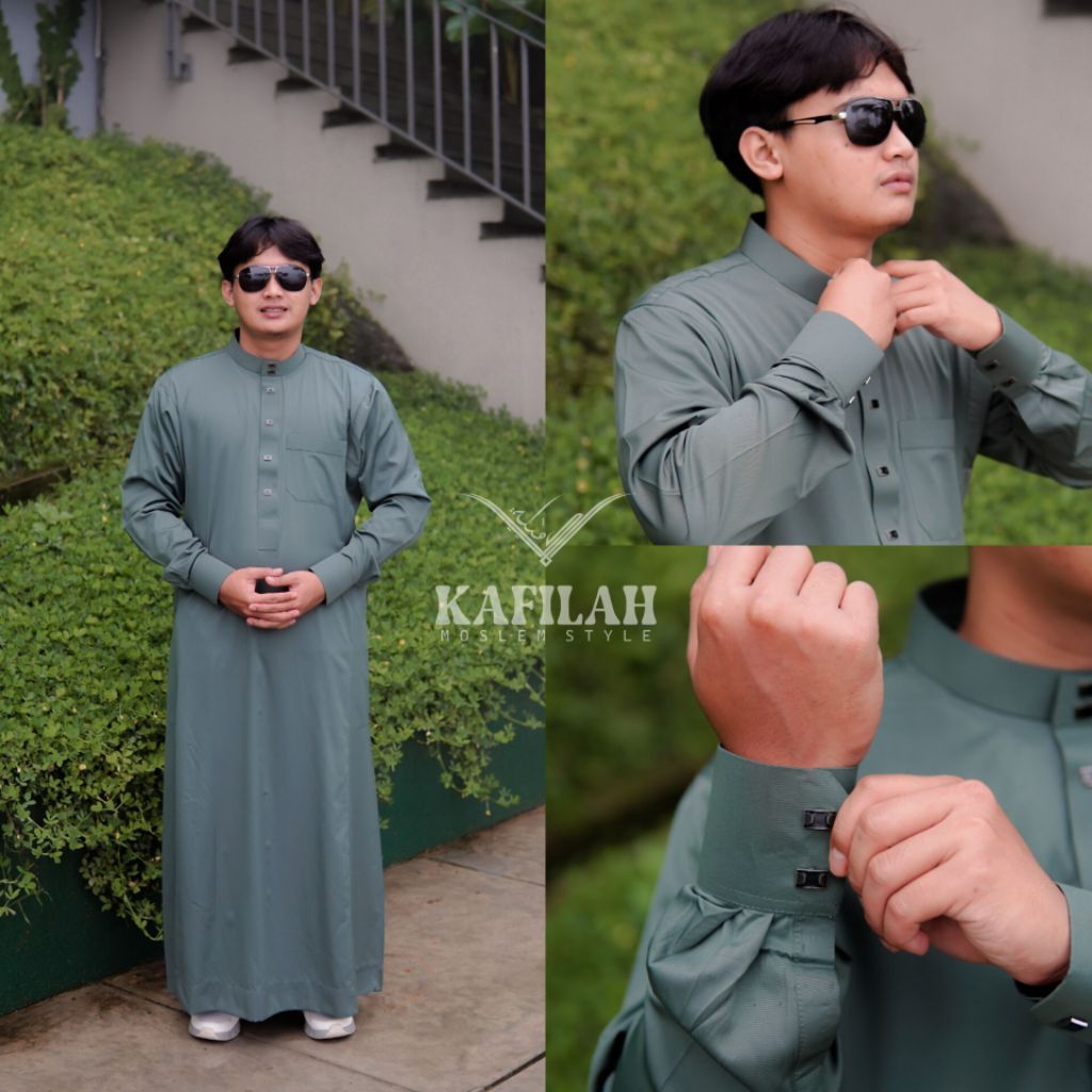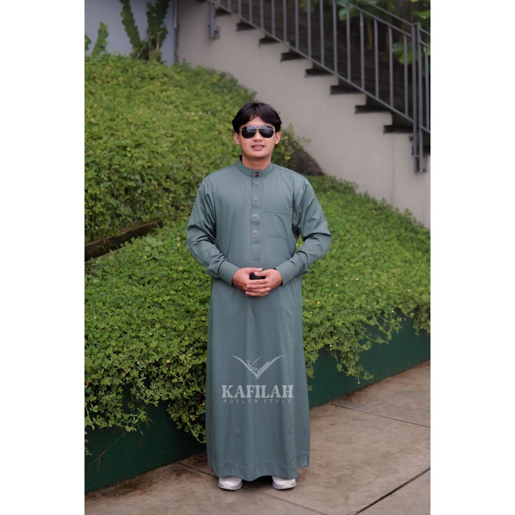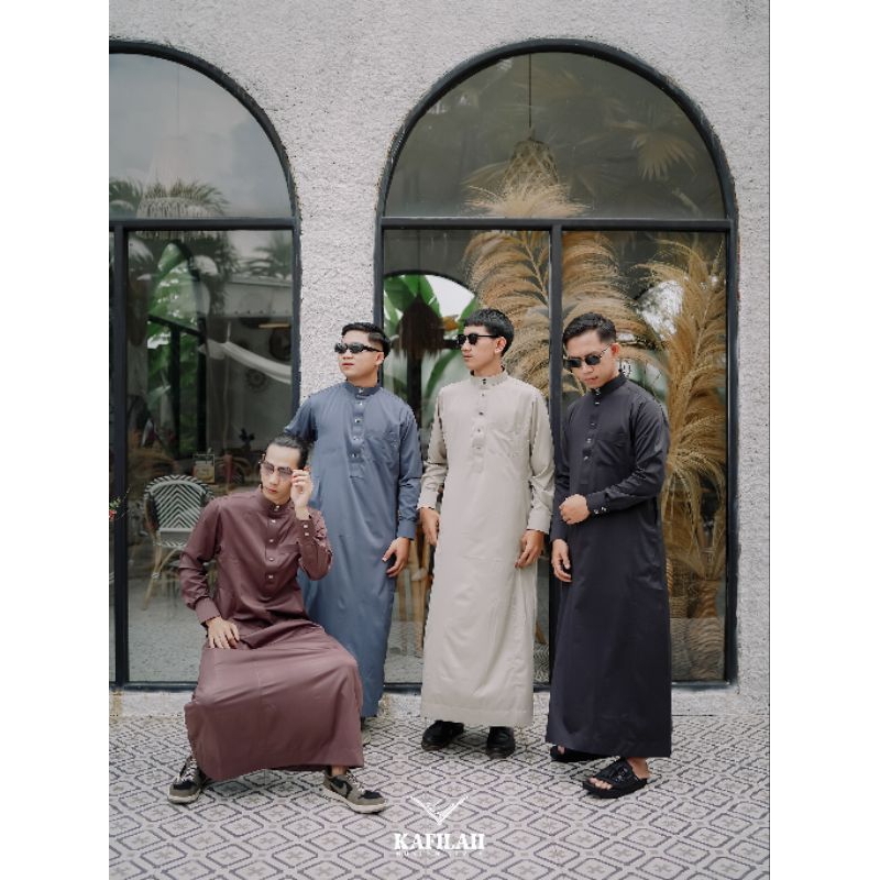 Gamis pria slimfit polos kancing snap lengan panjang manset Jubah pria muslim dewasa kerah tegak model haramain Tesla kekinian viral Baju muslim pria polos hitam putih warna jubah Saudi arab
