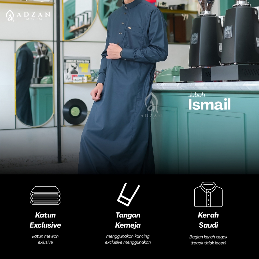 Jubah Gamis Thobe Slimfit Pria Ismail Warna Navy