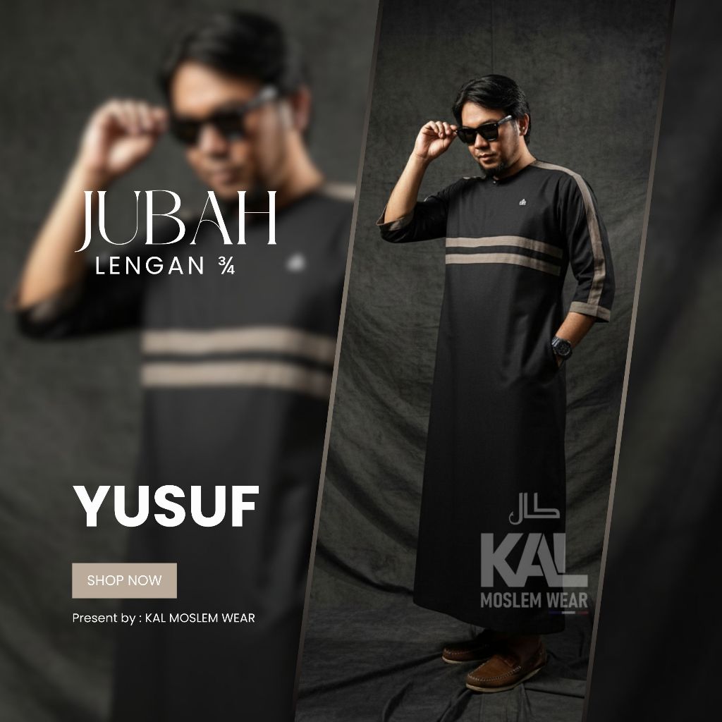 Jubah Pria Muslim YUSUF Model Kasual Tanpa Kerah Desain Elegan Lengan 3/4 Bahan Katun Premium