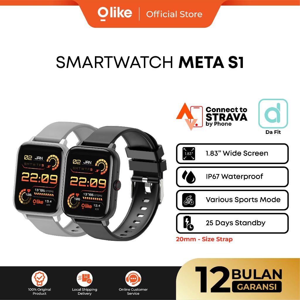 OLIKE Smartwatch META S1 1.83" Custom Face IP67 Bluetooth Call Battery 20 Day Sport Health Tracker