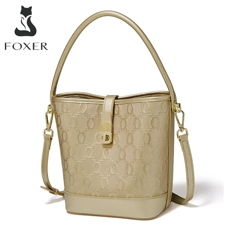 FOXER Tas Selempang Wanita Warna Tas Bucket Mewah Bergaya Tas Kurir Kulit Asli