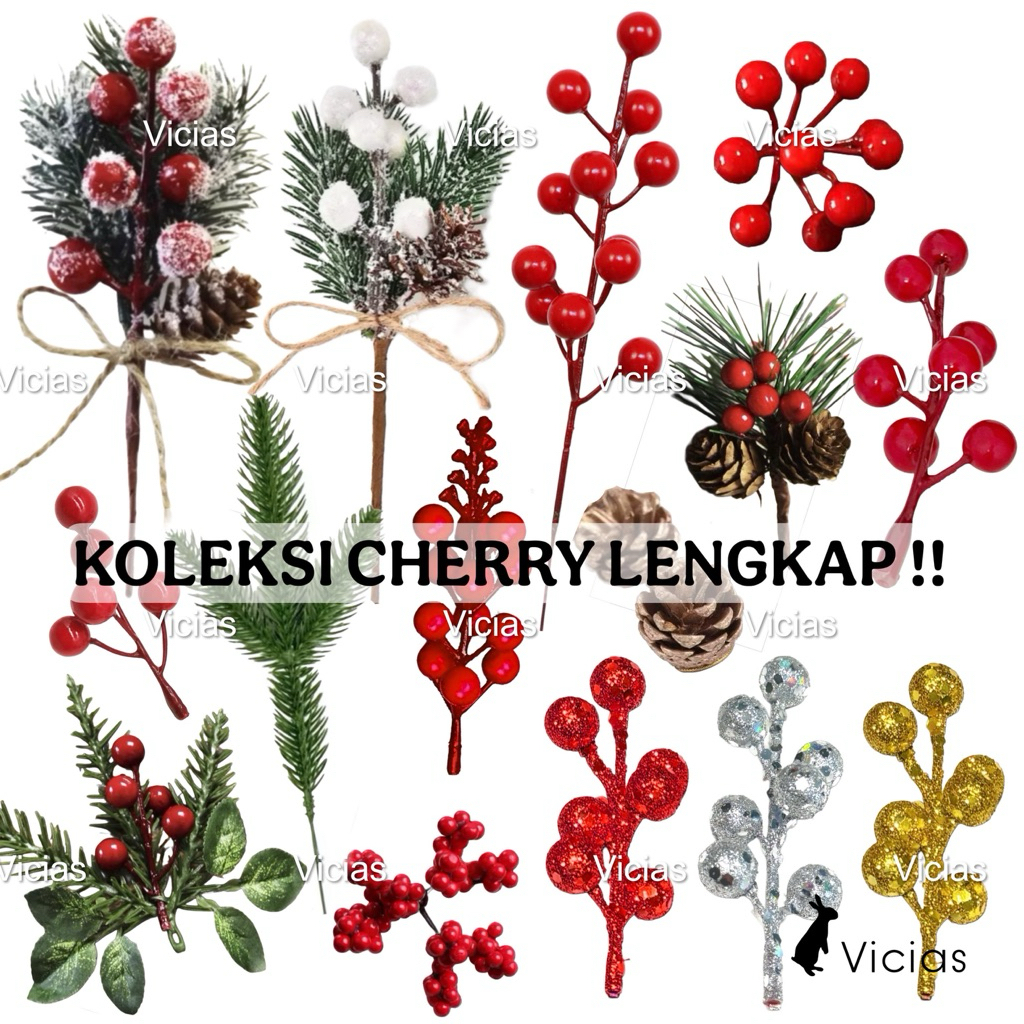 Hiasan Cherry Pine Daun Cone Tusuk Ceri Dekorasi Hampers Parcel Natal Christmas Murah