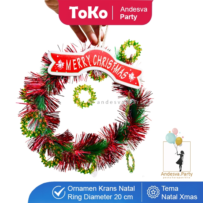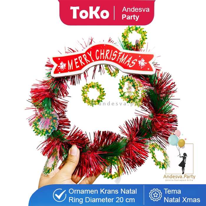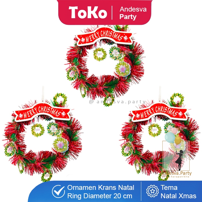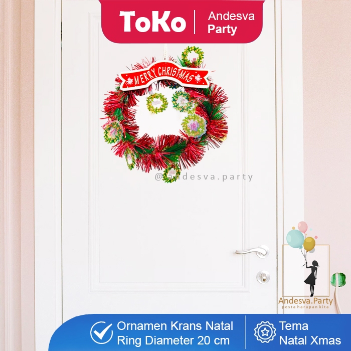 Hiasan Natal Krans Merry Christmas Merah / Ornament Natal Ring Karangan Bunga Natal Merry Christmas