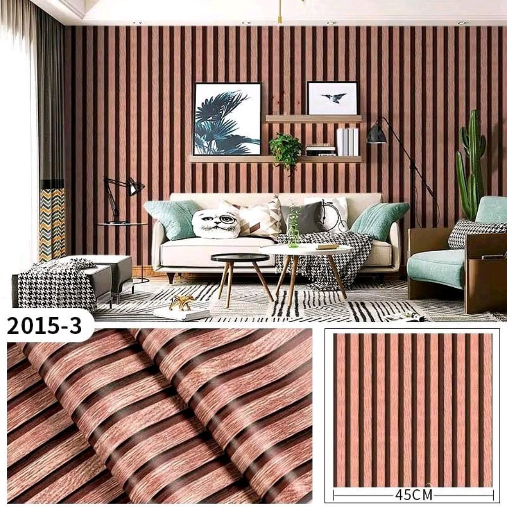 PROMO PAKET HEMAT 5 ROLL Wallpaper Sticker Dinding Kayu Panel Abu Coklat Krem Lis Dekorasi Dinding R Tamu Kamar