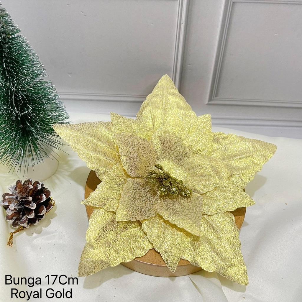 Hiasan Bunga Kastuba insettia 23CM Ornamen Dekorasi Gantungan hon Natal Christmas termurah