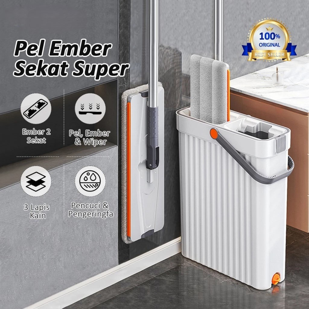 Pel Lantai Otomatis 2-in-1 Ember Sekat 360° Dual Bucket Mop Microfiber Anti Tumpah – Alat Pel Lantai Dengan Ember P