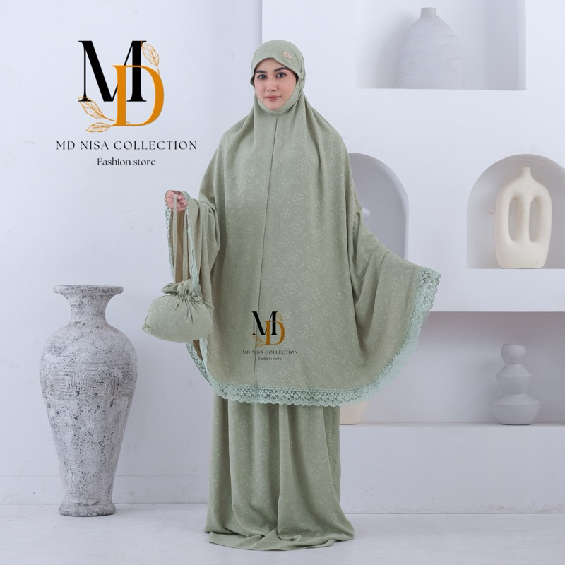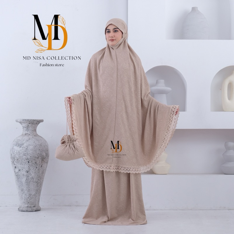 Mukena Shadira Dewasa Embos Cringkle Airflow Menutup Dagu Motif Bunga Mewah Renda Tille Daisy Atasan Bawahan