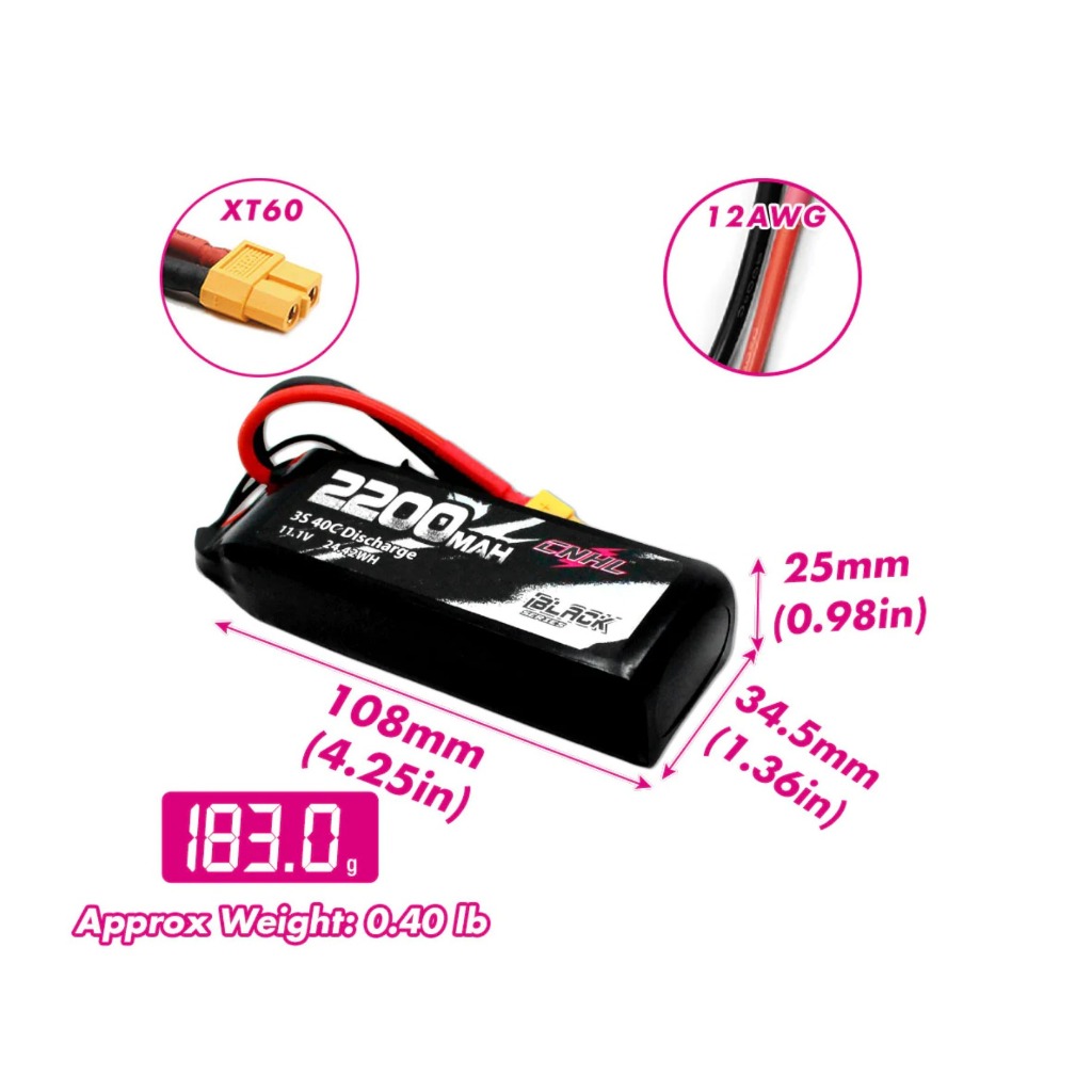 CNHL Black Series 2200mAh 3S 11.1V 40C Li Battery XT60 DEAN T-PLUG for Drones