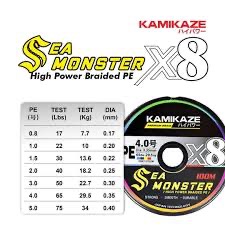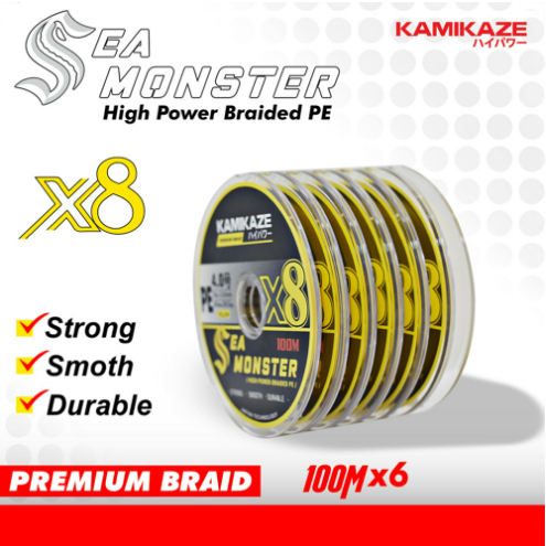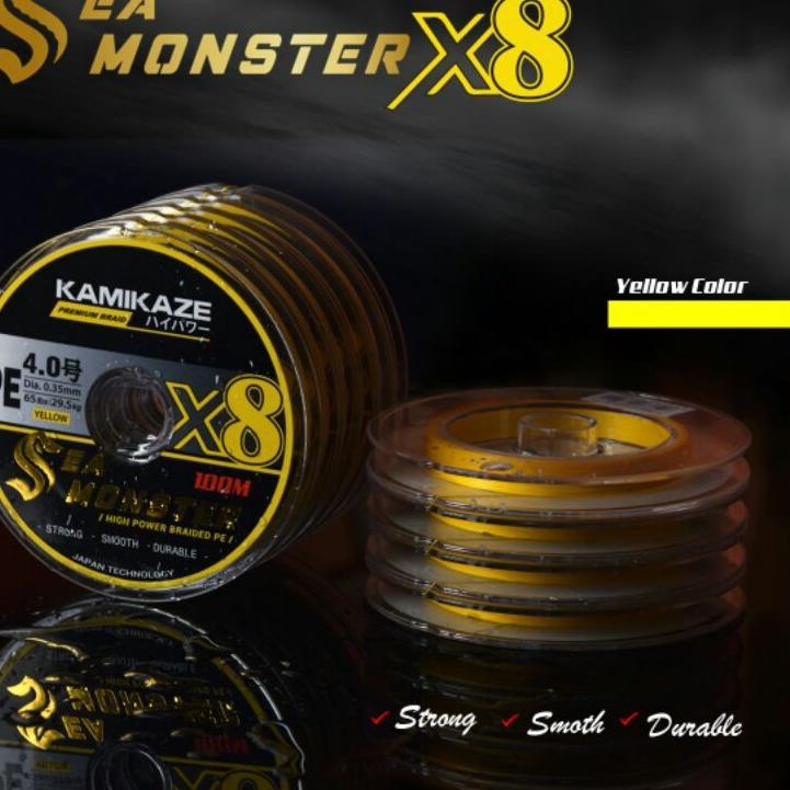 SENAR PE KAMIKAZE SEA MONSTER X8 100M Yellow / Multi Color |Connecting 6 Braid Line Pancing