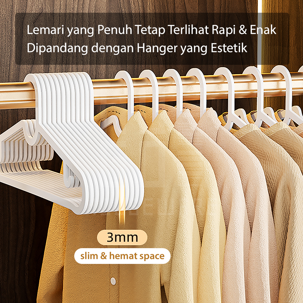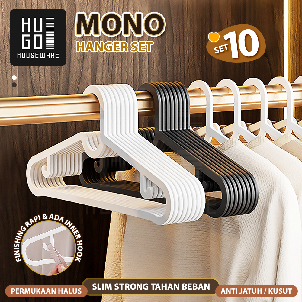 HUGO Hanger Gantungan Baju Plastik Minimalis Gantungan Pakaian Dewasa Isi 10 Pcs Bahan Tebal Premiium