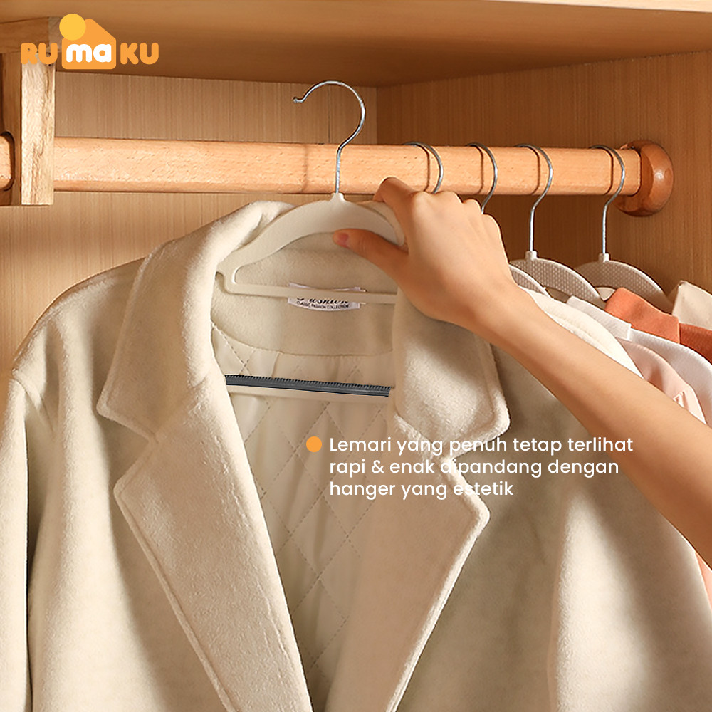 Rumaku Hanger 10 Pcs Gantungan Baju Plastik Kokoh dengan Karet Anti Slip