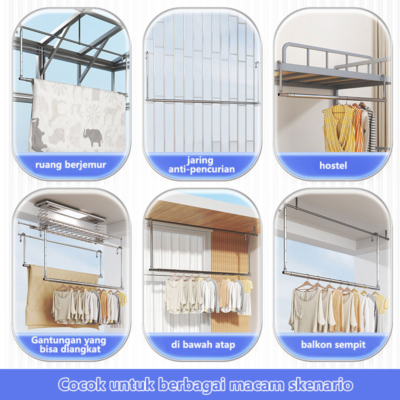 Jemuran Gantung Jemuran rtable Stainless Steel Fleksibel Tiang Jemuran Untuk Balkon Kanopi Tiang Hanger Bebas Panga