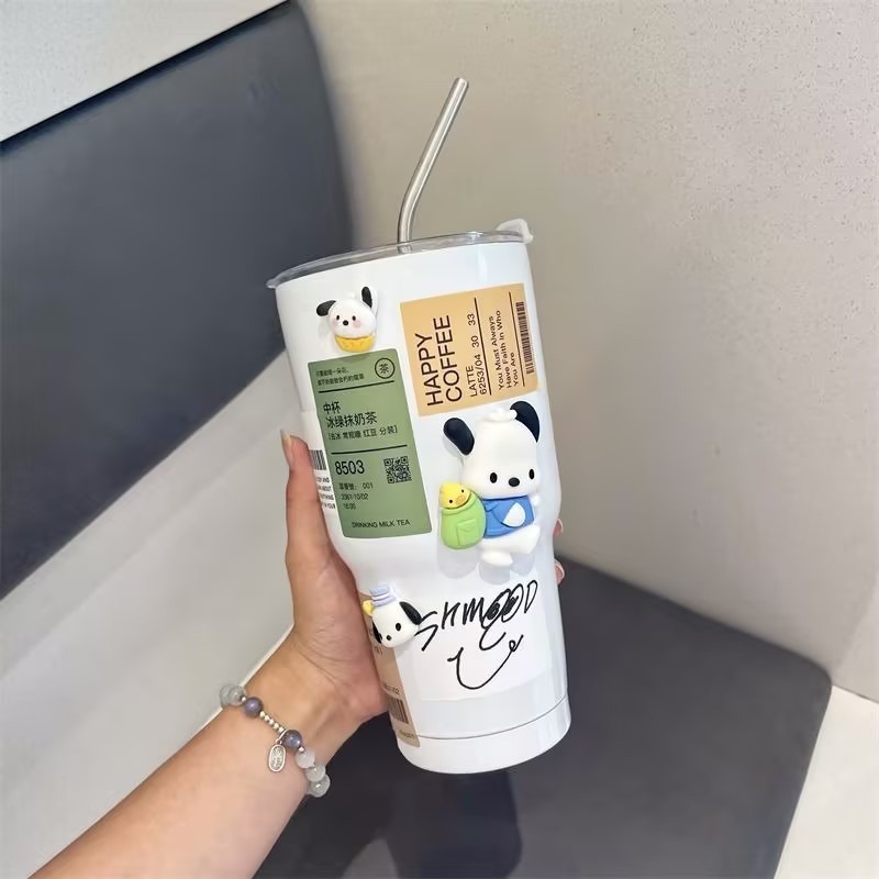 VOOVA 900ml Botol Minum Stainless Steel/900ml Sedotan Cangkir/Boto Minum Kopi Sedotan/Stainless Steel Tumblr Coffee