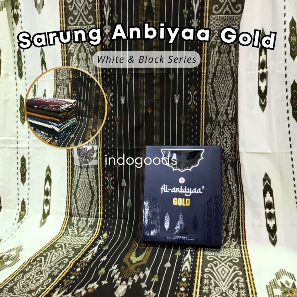Sarung Pria Dewasa Al Anbiyaa Gold Motif BHS Premium Dasar Putih Seragam [GROSIR/ECER MURAH]