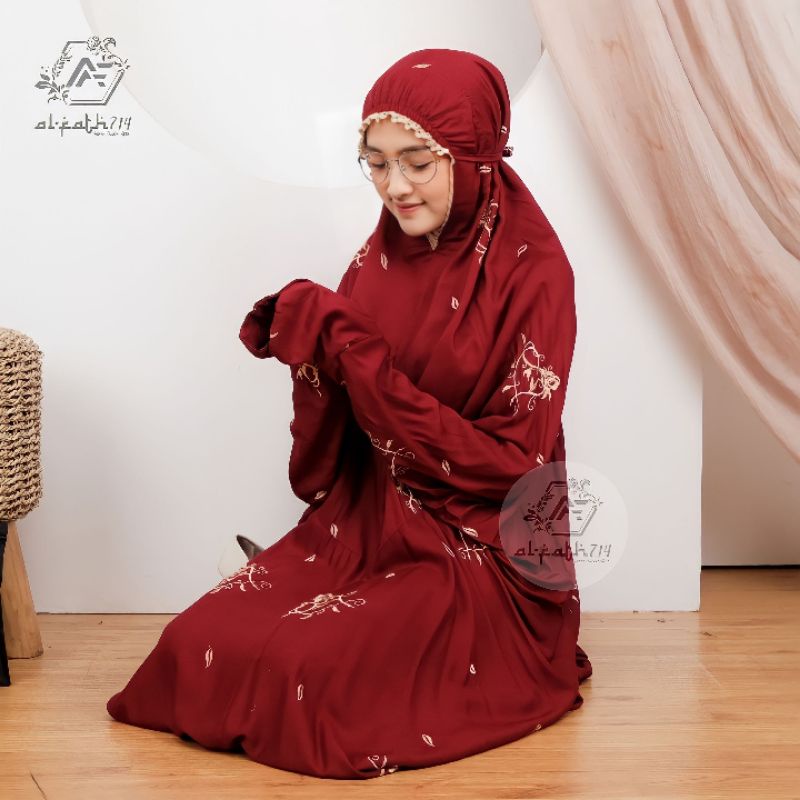 Mukena Terusan Dewasa Bordir Bunga Rose love Mukenah Lajuran Dewasa