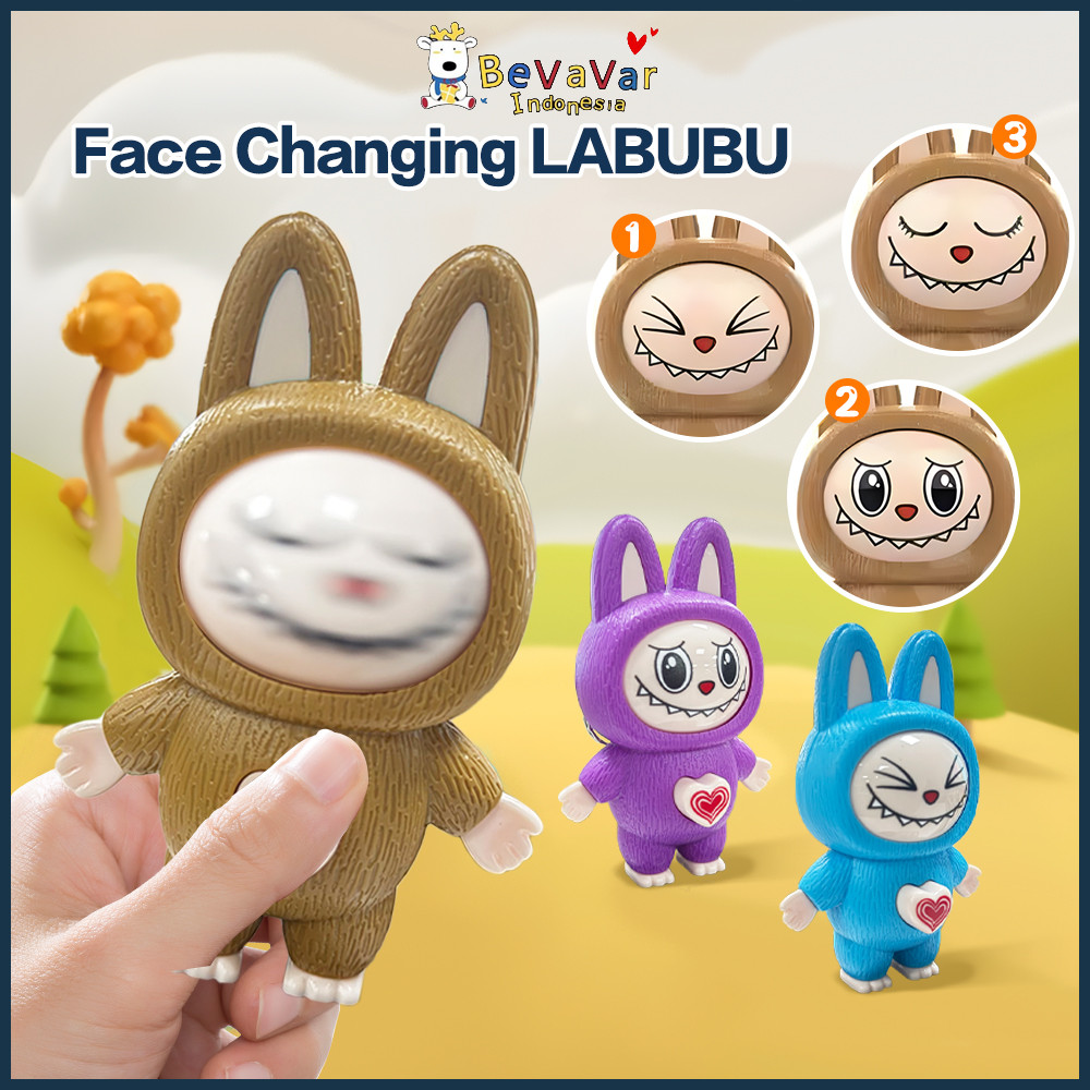 BEVAVAR Labubu Keychain Face Changing Mainan Gantungan Kunci Labubu Hadiah Anak