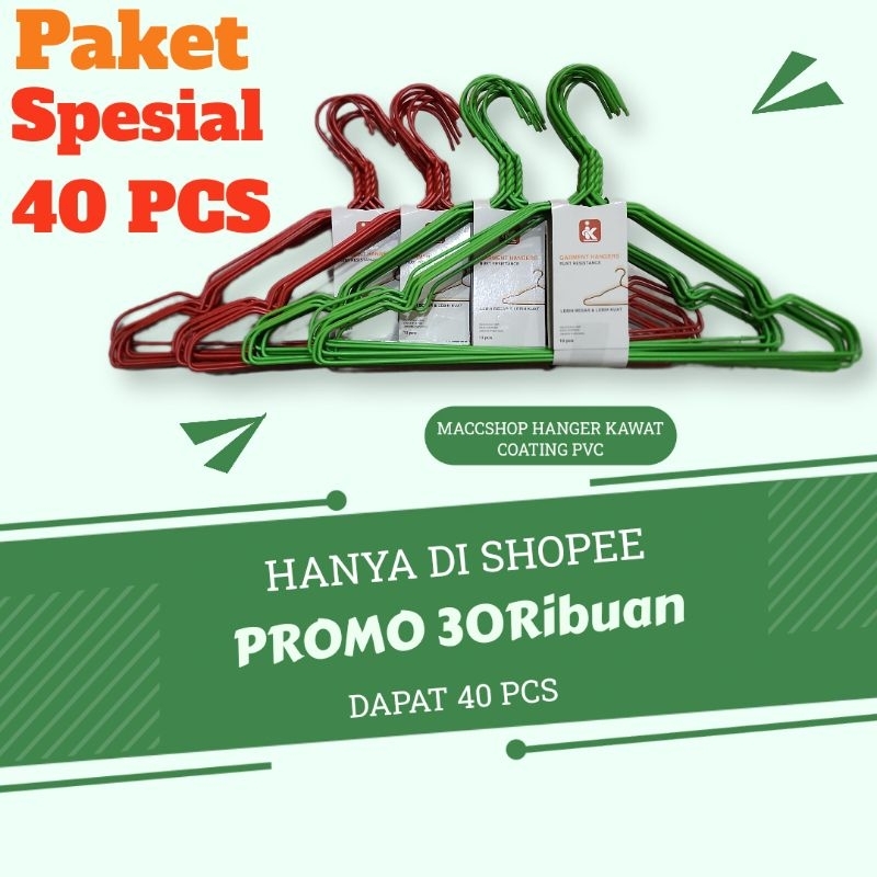 PAKET ISI 40 PCS - GANTUNGAN BAJU WARNA DAPAT 40 PACK HANGER KAWAT COATING PVC INDOKURNIA