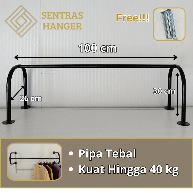 Gantungan Baju Tembok, 4 Kaki Warna Hitam