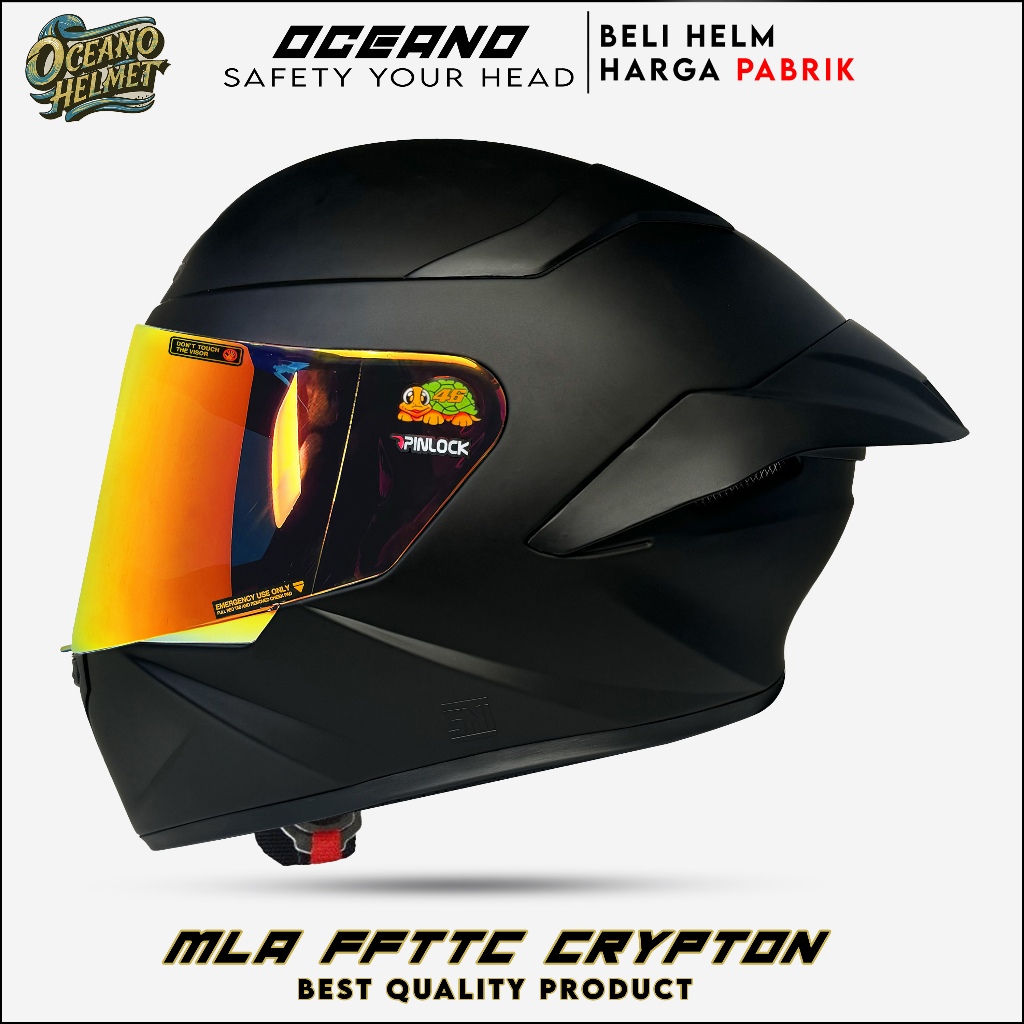 Helm Full Face MLA TTC Crypton / Hitam Dof Kaca Blue / Helm Premium Untuk Pria Dan Wanita Dewasa SNI