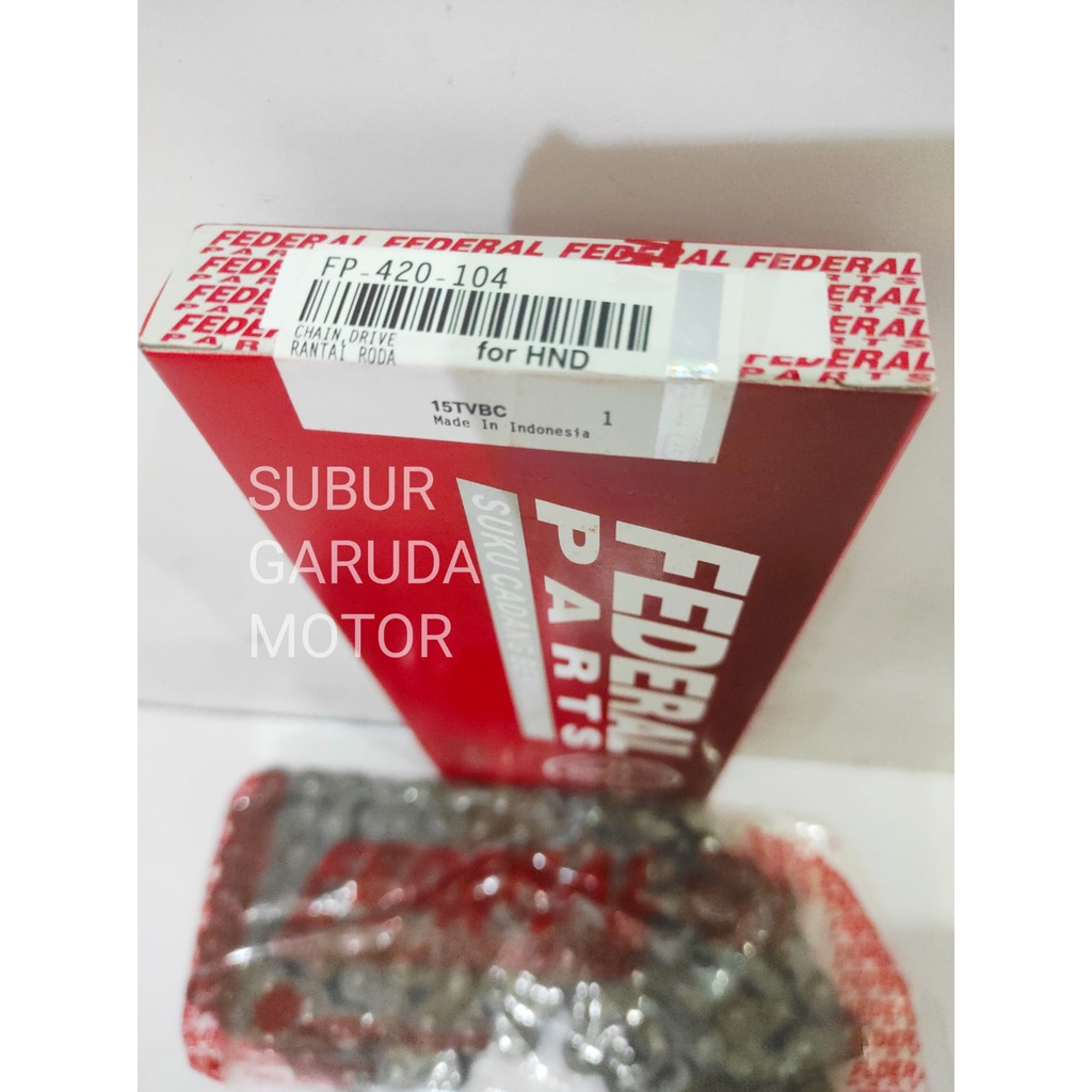 RANTAI RODA FEDERAL 420 - 104 SUPRA X 125 KARISMA BLADE REVO ABSOLUTE FIT NEW MOTOR UNTUK GEAR 420 MERK FEDERAL KUA