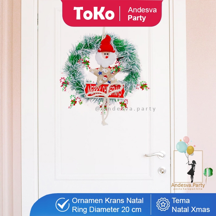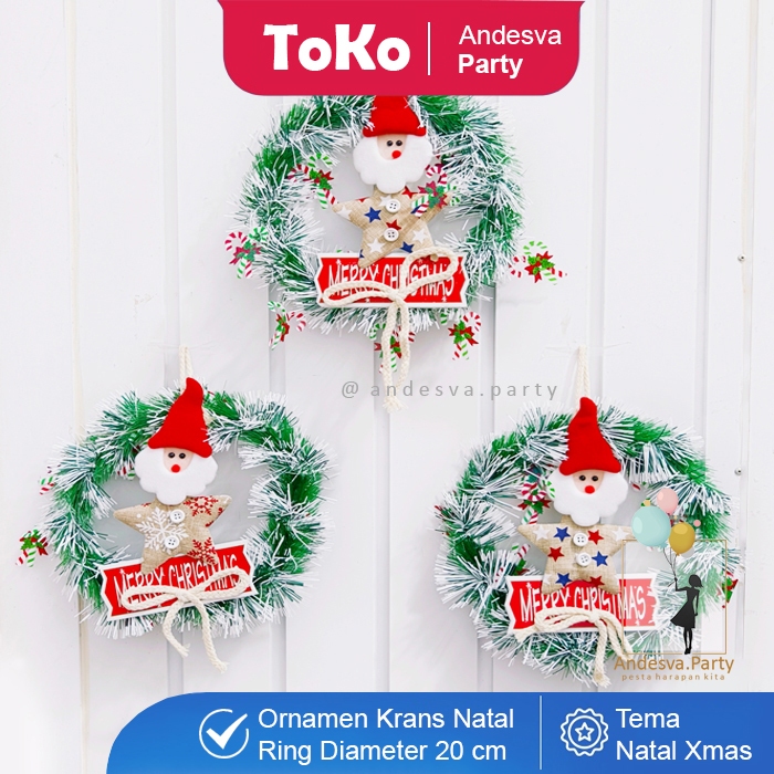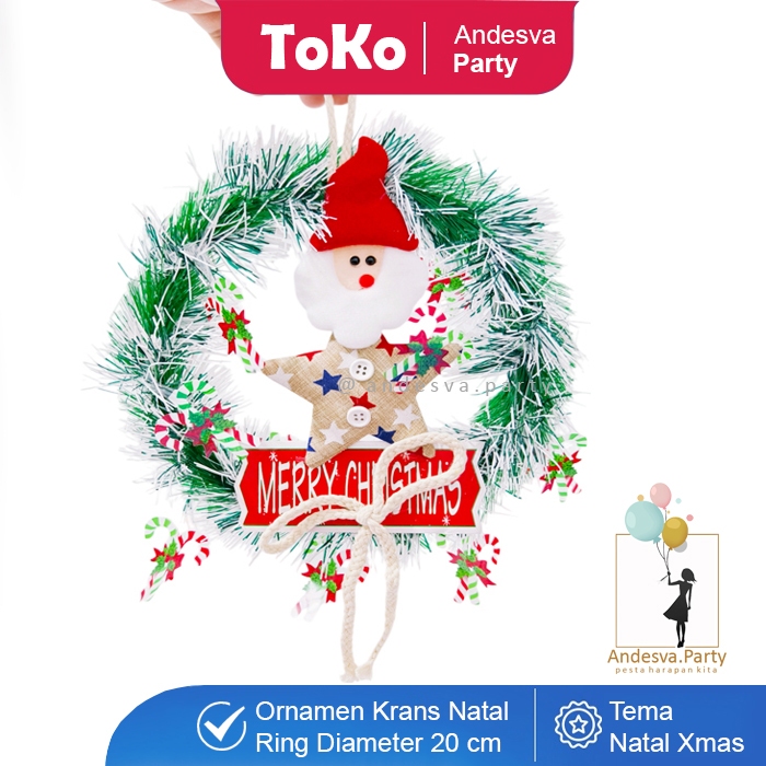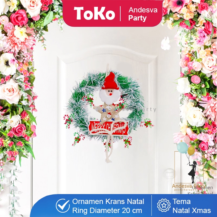 Hiasan Natal Krans Ornament Tongkat Santa Bintang / Ornament Natal Ring santa / Karangan Bunga Natal