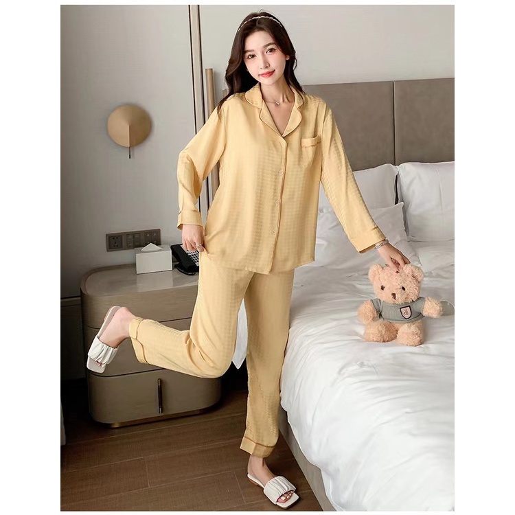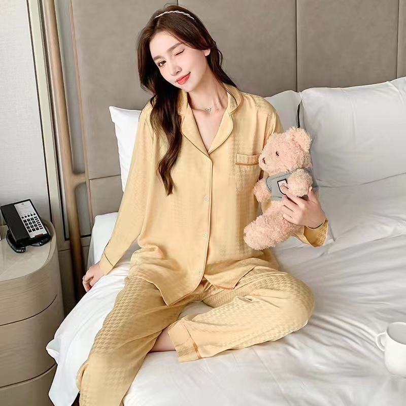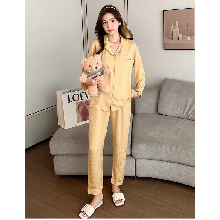 2025 pakaian tidur sutra sutra es wanita baru celana panjang lengan panjang setelan pakaian rumah