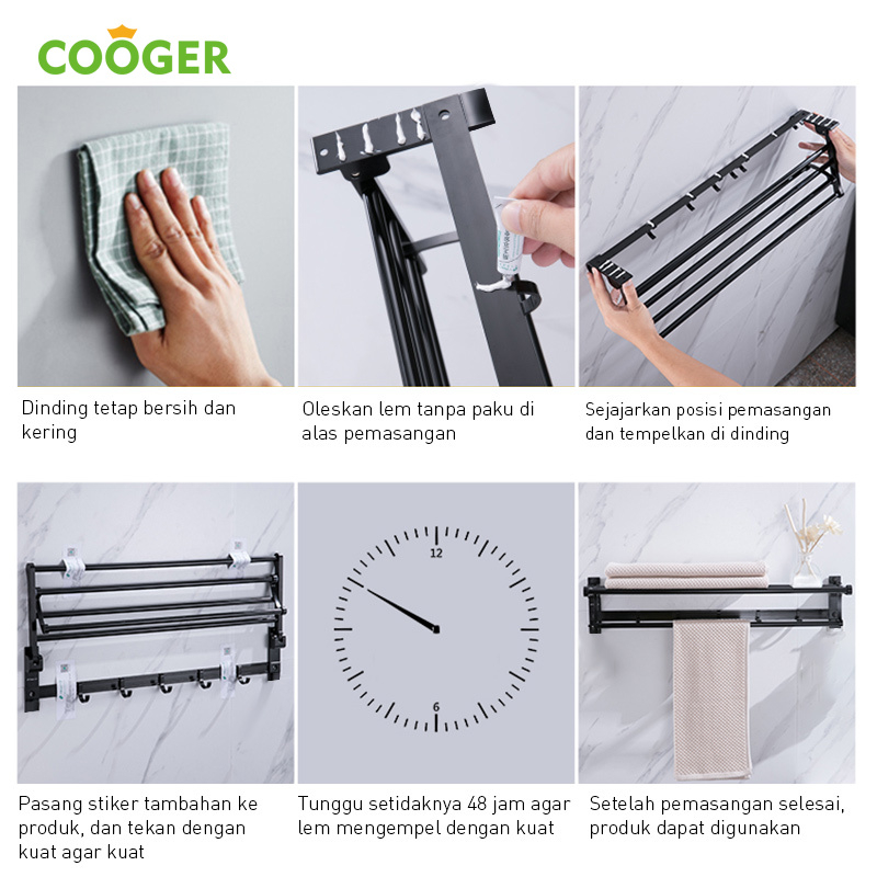 COOGER Rak Handuk Rak Gantungan Handuk Rak Jemuran Kamar Mandi Alumunium Towel Bar Anti Karat