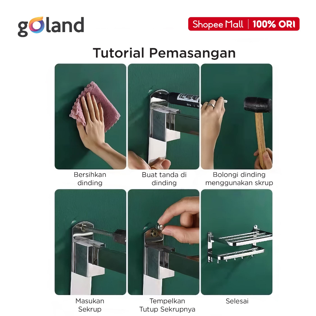 Goland Rak Gantungan Handuk Kamar Mandi Stainless Steel - Rak Gantung Handuk 1 & 2 Susun Multifungsi