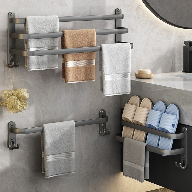 Rak kamar Mandi Rak Handuk Gantungan Handuk Kamar Mandi Paduan Aluminium Rak Dinding Tempel Aesthetic Serbaguna