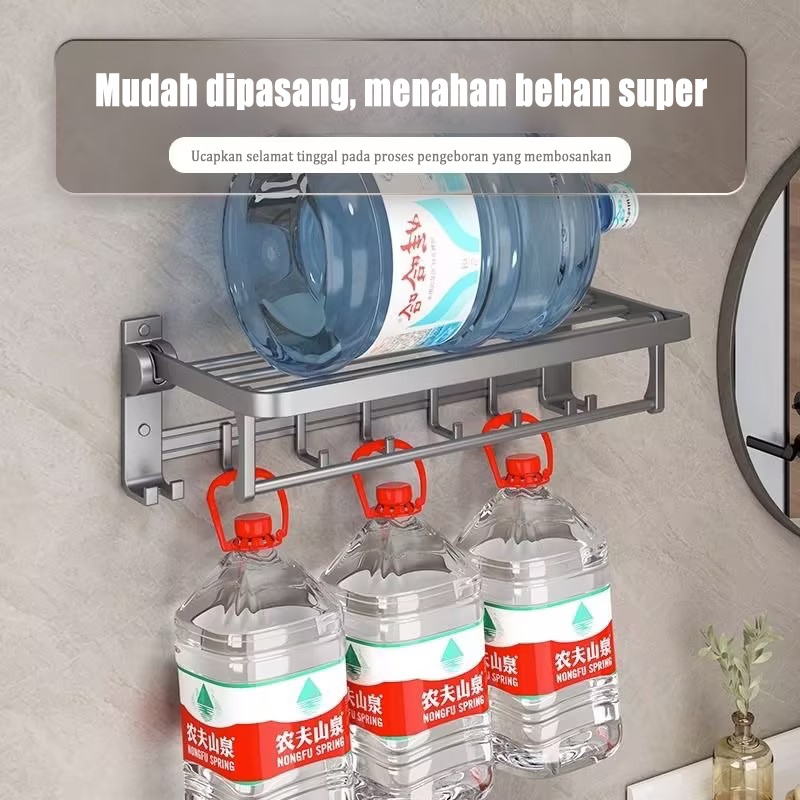 Rak handuk rak penyimpanan kamar mandi rak penyimpanan dinding tahan air tanpa pengeboran