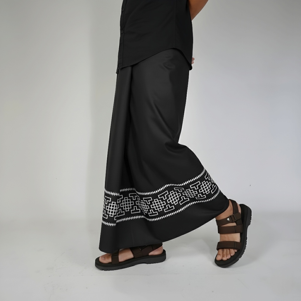 Wadimor - Sarung Bordir Motif Mozaik Timbul Katun Hitam Pintu Aceh Keren Elegan Pria Dewasa Terbaru