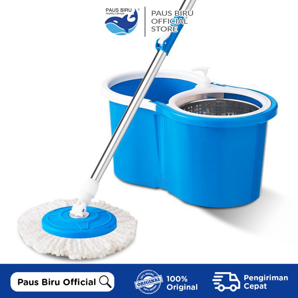 Paus Biru - Alat Pel Lantai Stainless Super Mop Dengan Ember Pencuci Putar 360°