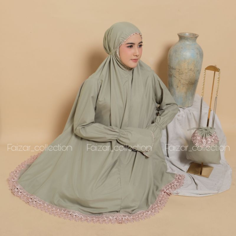 Mukena Dewasa Setelan Berlengan Haji Dan Umroh Saku Resleting Katun Premium