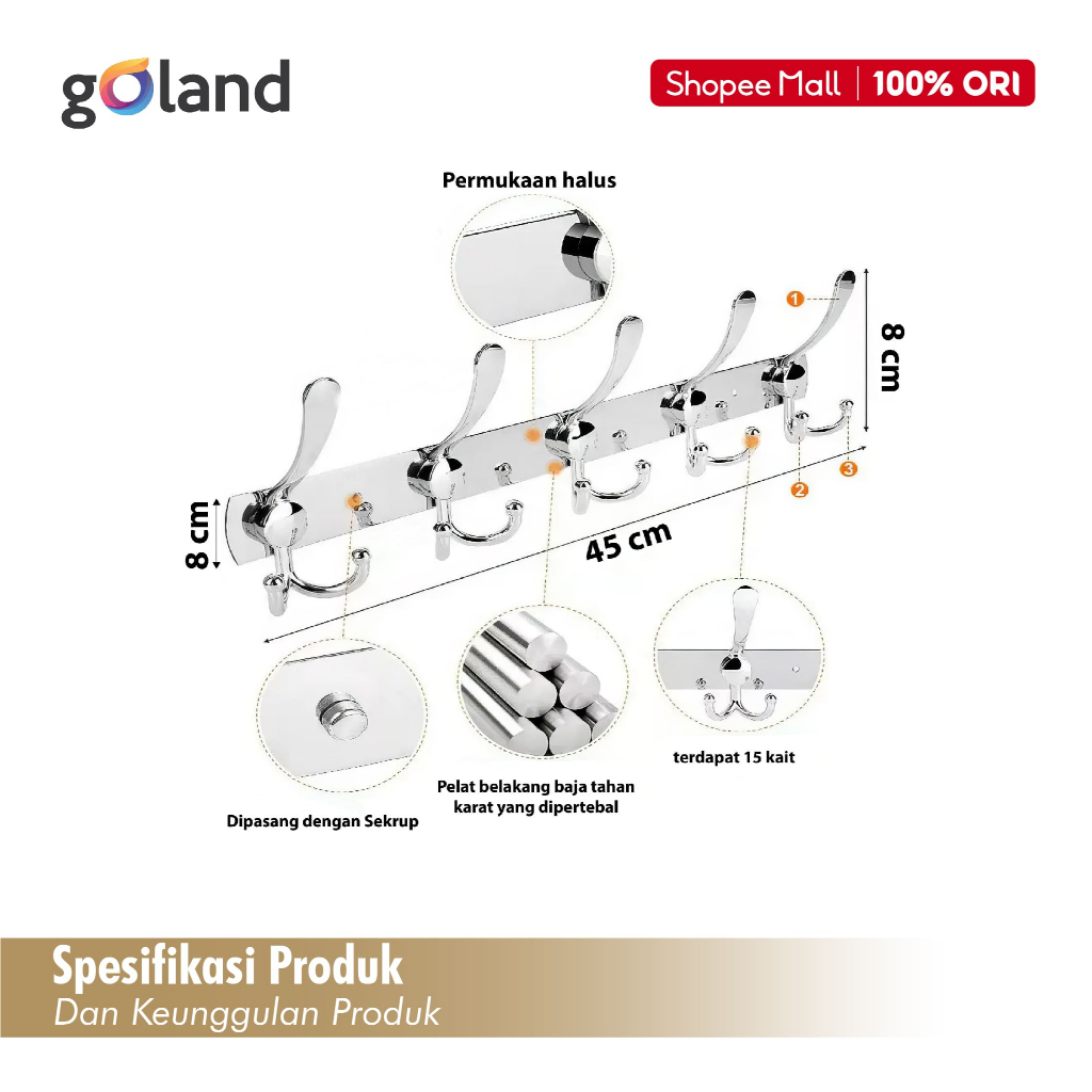 Goland - Gantungan Baju Dinding Stainless Steel 5 Kait - Gantungan 5 Hook Motif Premium Multifungsi
