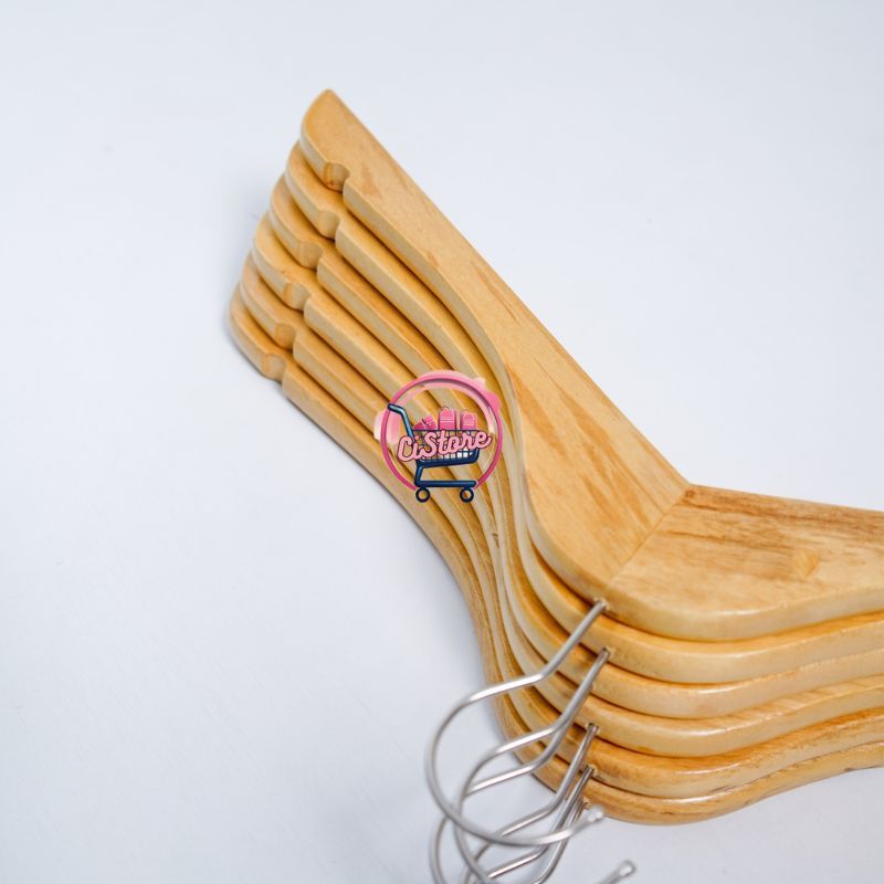 12 PCS / 1 LUSIN HANGER KAYU NATURAL BAGUS TERMURAH / GANTUNGAN BAJU KUALITAS BAGUS - DEWASA