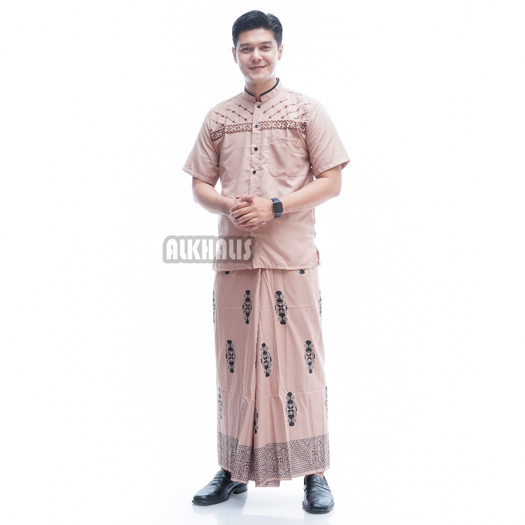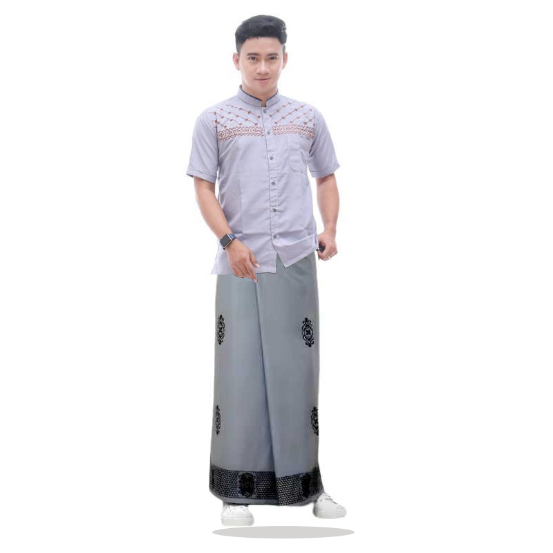 Paket SARKO Sarung dan Baju koko Muslim Pria Lengan Pendek Motif Bordir Jasuke