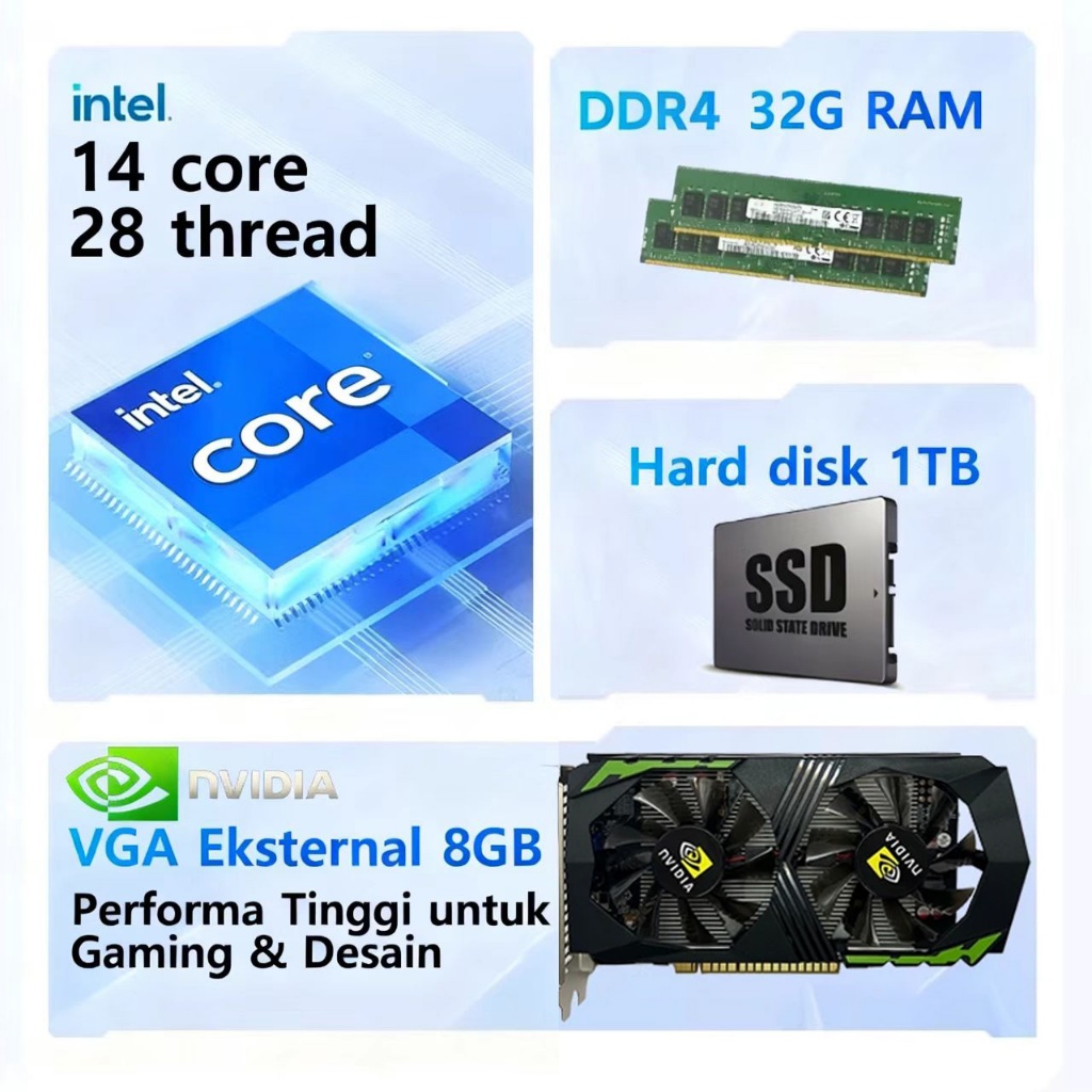 ACER inter i5/i7 12Core komputer gaming full set PC desktop, kantor, mesin itan desain Kipas RGB gratis