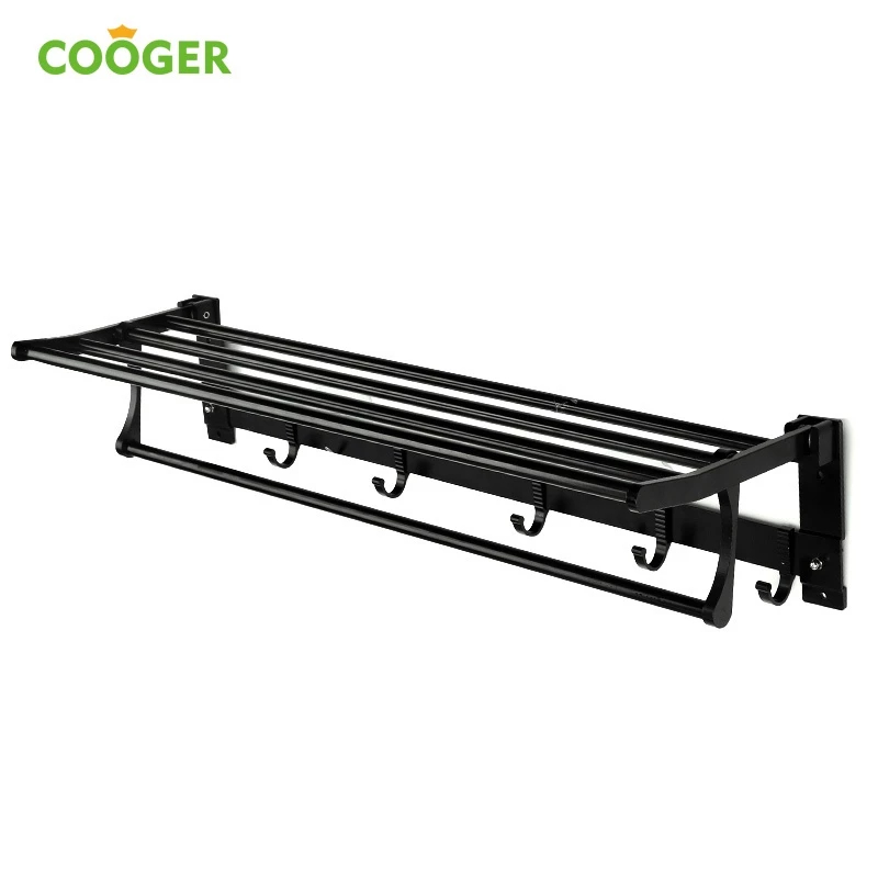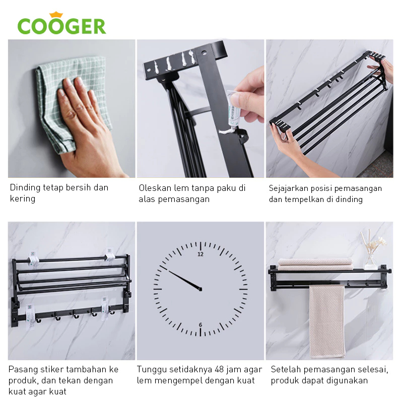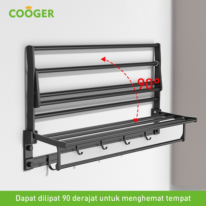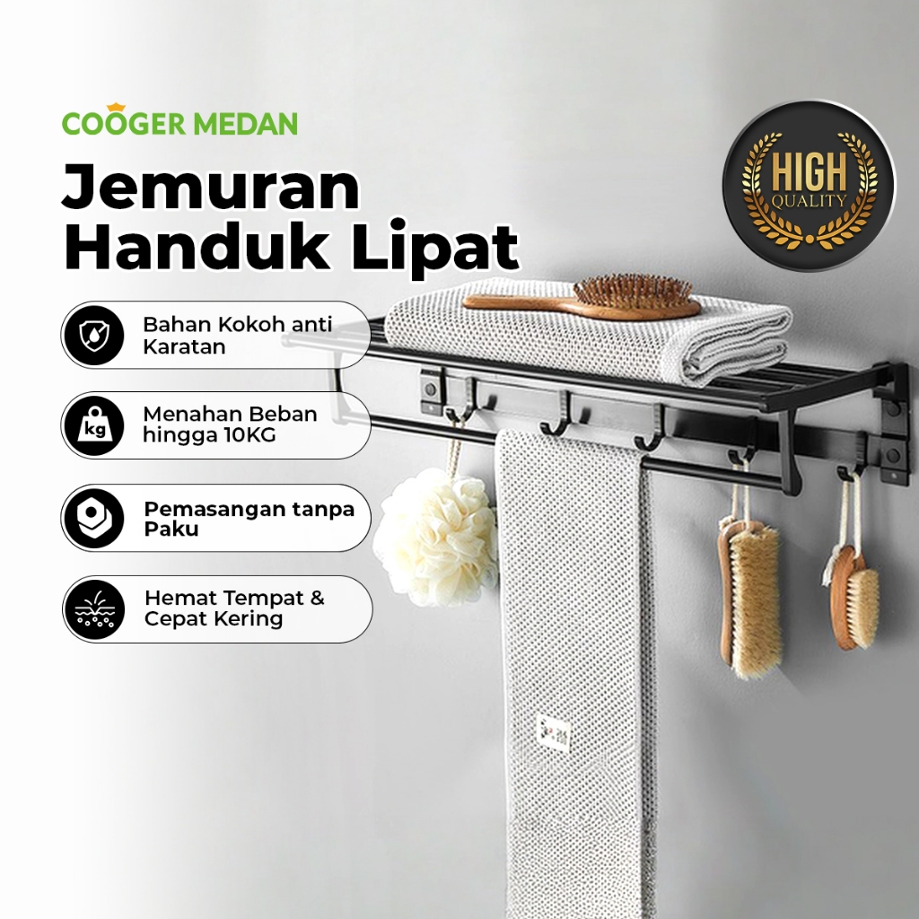 COOGER MEDAN Rak Handuk Kamar Mandi Gantungan Dinding Dapur Lipat dengan Pengait Alumunium Rack