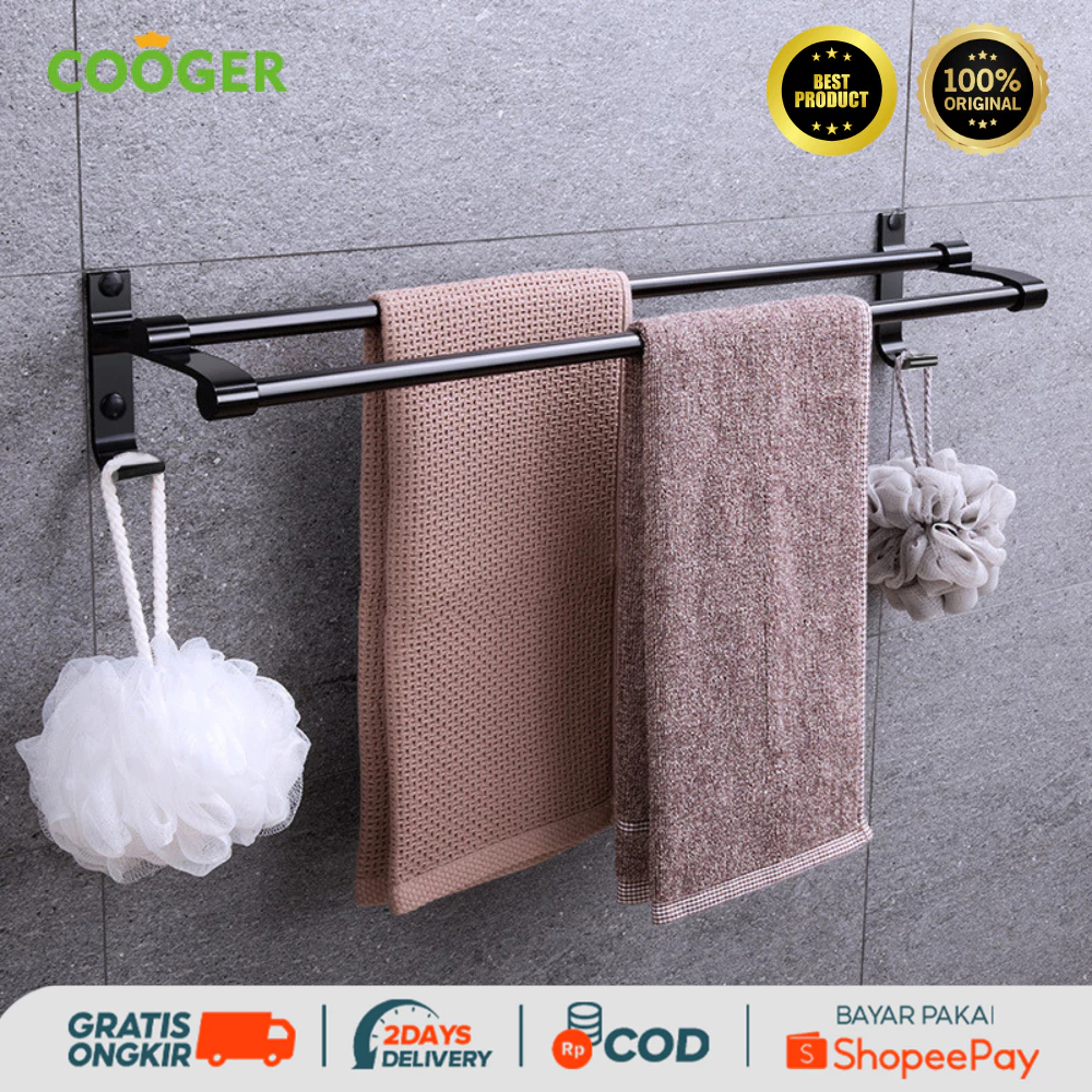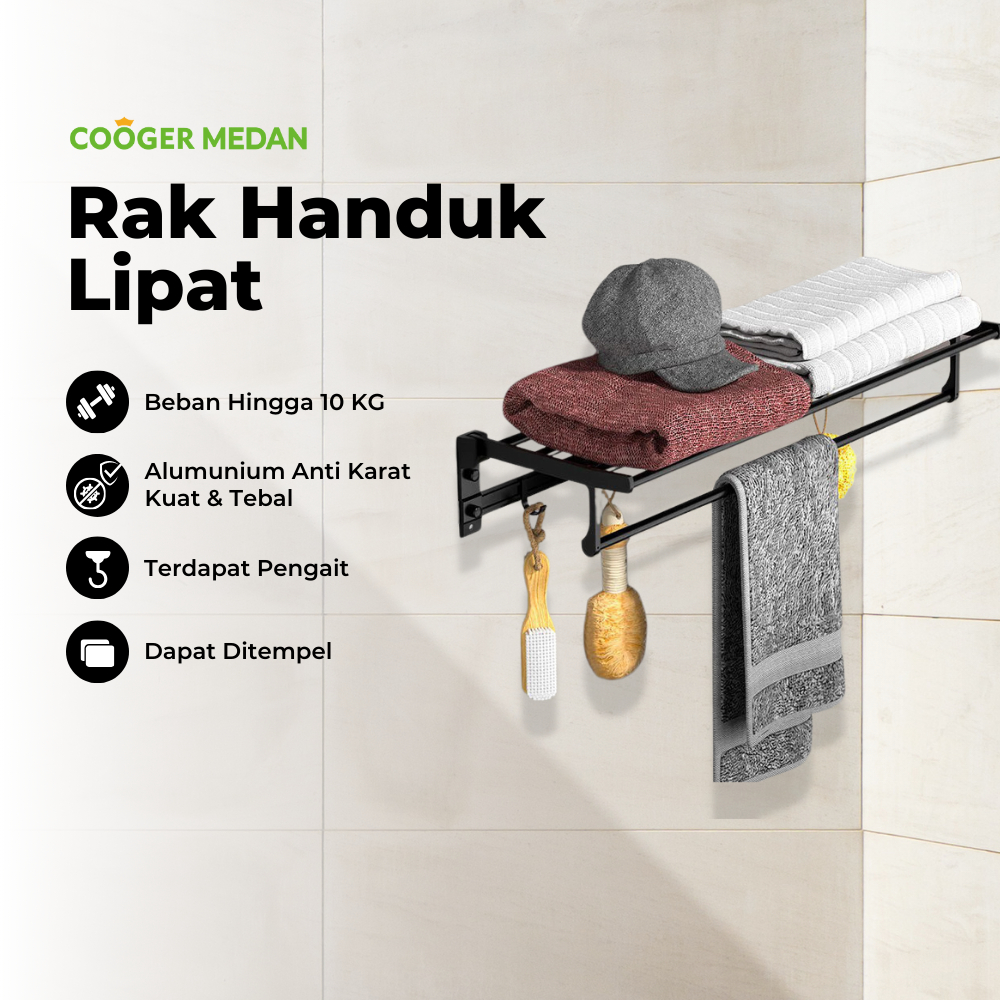 COOGER MEDAN Rak Handuk Kamar Mandi Multifungsi 50cm Gantungan Dinding Dapur Aluminium Dapat Dilipat