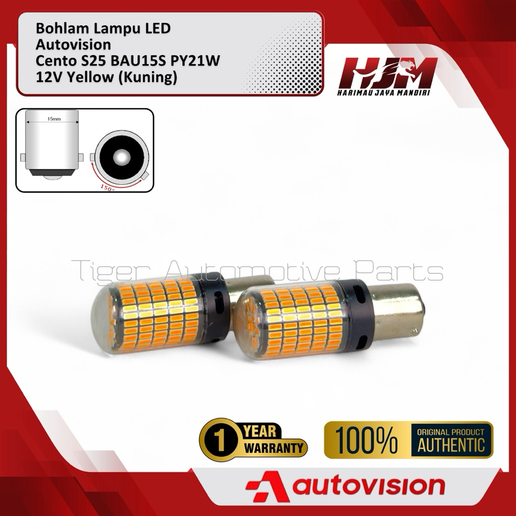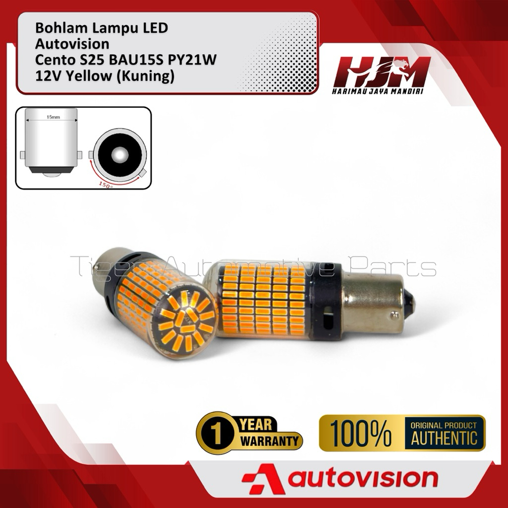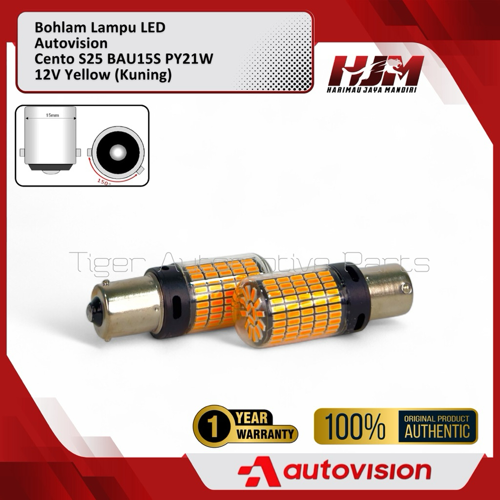 Bohlam LED S25 PY21W BAU15s 12V Yellow Autovision Cento - Lampu Kaki 1 Putar Sein Sen Kuning Original