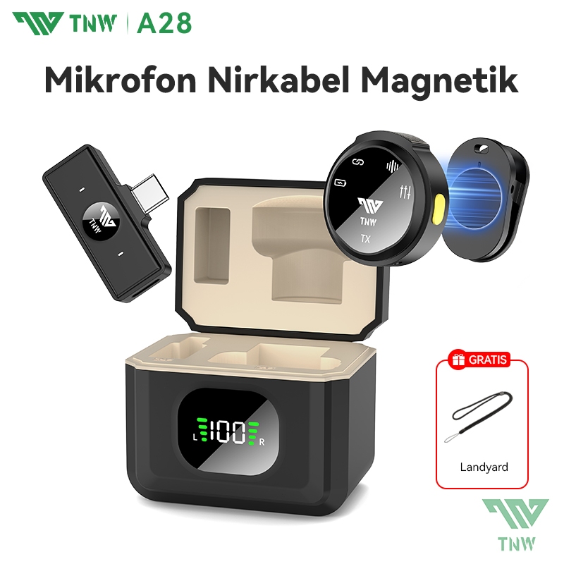 TNW A28 Wireless Microphone Magnetic Clip On Mic Lavalier Microphone HP Plug & Play Nirkabel Mikrofon with Charging