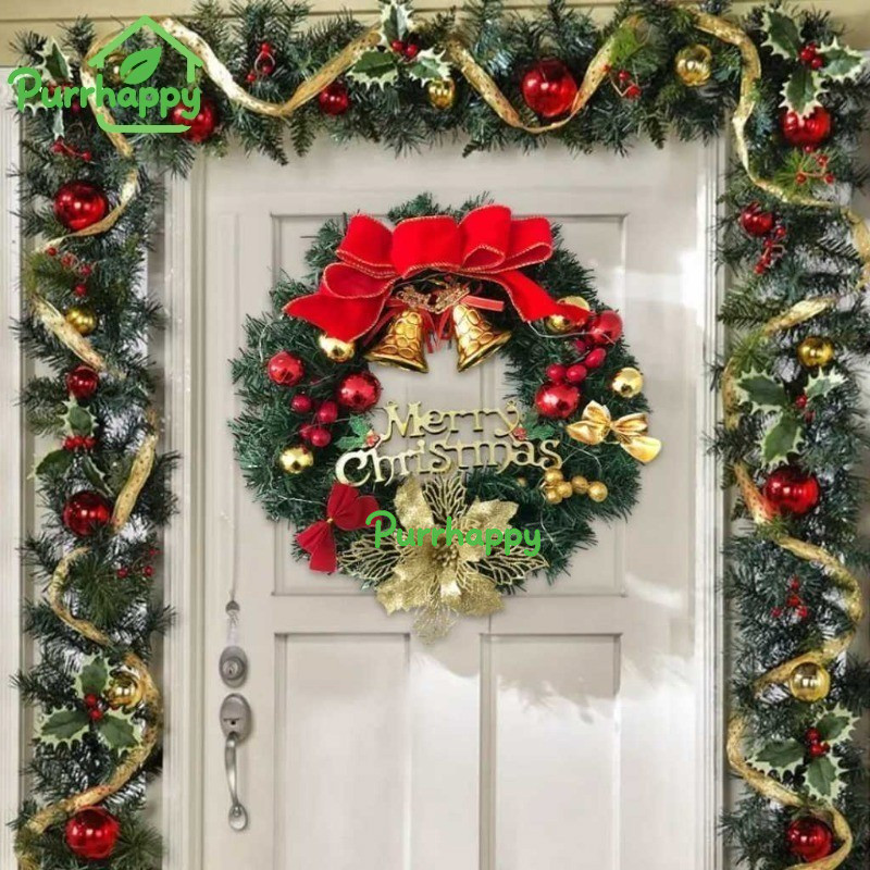 Purrhappy Karangan Bunga Natal Imitasi Christmas Wreath Hanging Decorations Natal Krans Natal Ornamen Hiasan Pintu & Dinding Yang Tidak Mudah Rontok Dan Tahan Lama