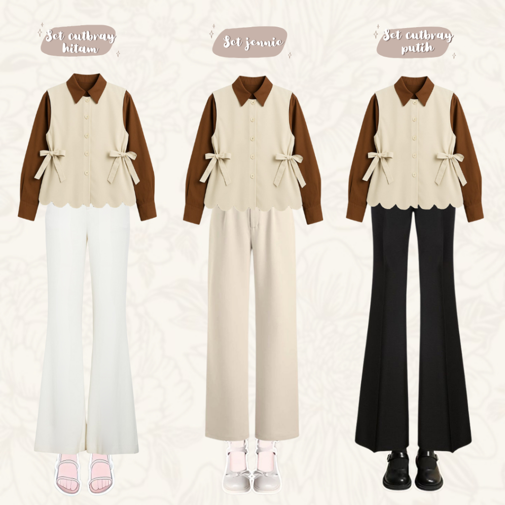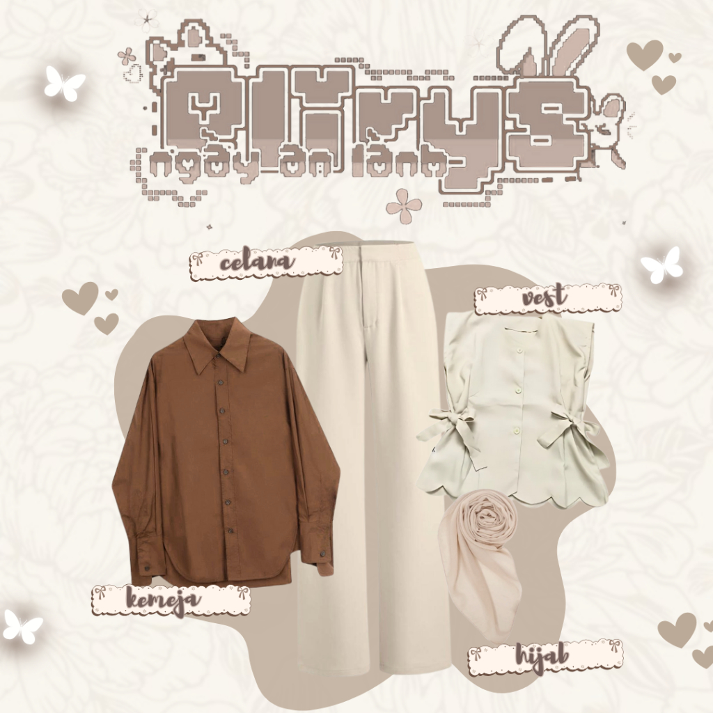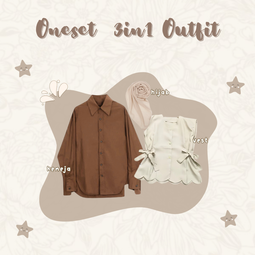 Oneset Eliry Korean Vest Hijab Hijab,Vest,Kemeja,Celana Set 4 in1 Wanita Remaja Kekinian - LO74