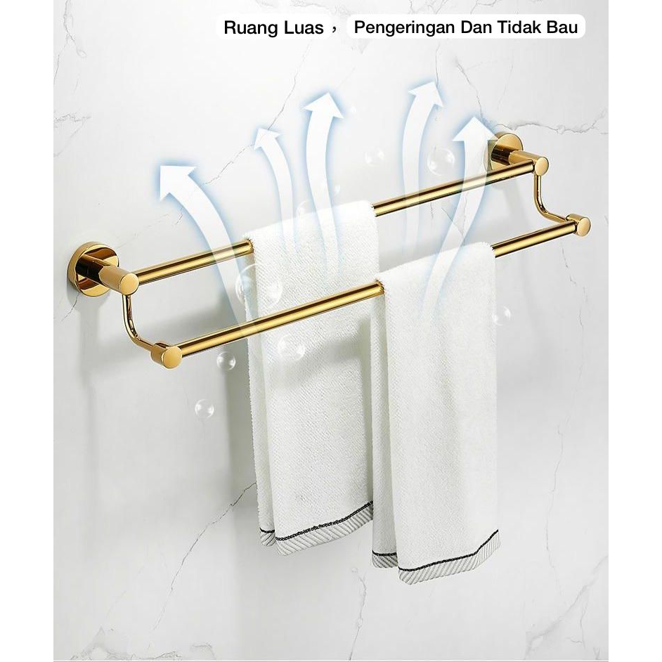 Rak Handuk Kamar Mandi 2 Baris SS304 High Quality Glossy /Gantungan Handuk Tembok
