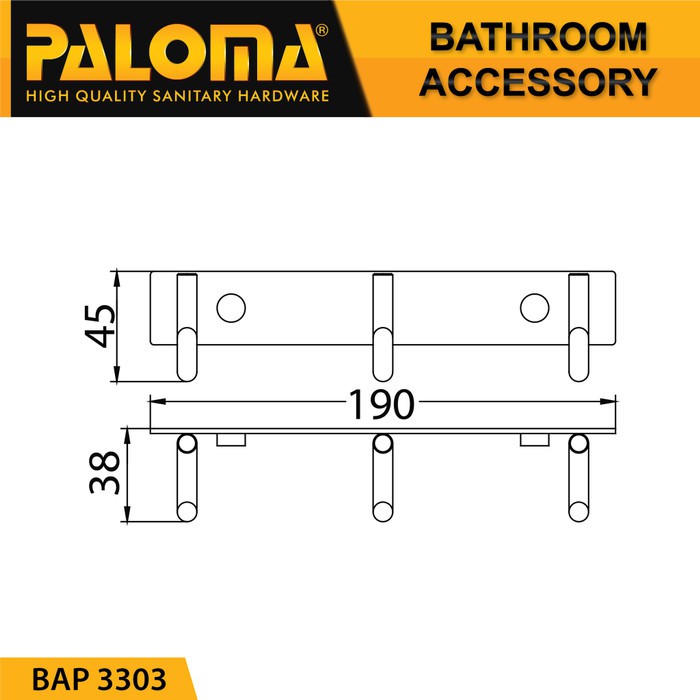 PALOMA BAP 3303 Kapstok Gantungan Baju Handuk Rak Hanger Mandi 3 Kait
