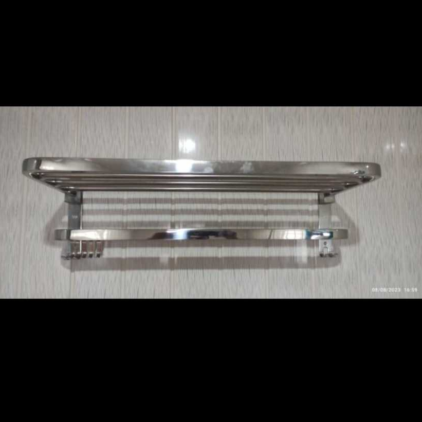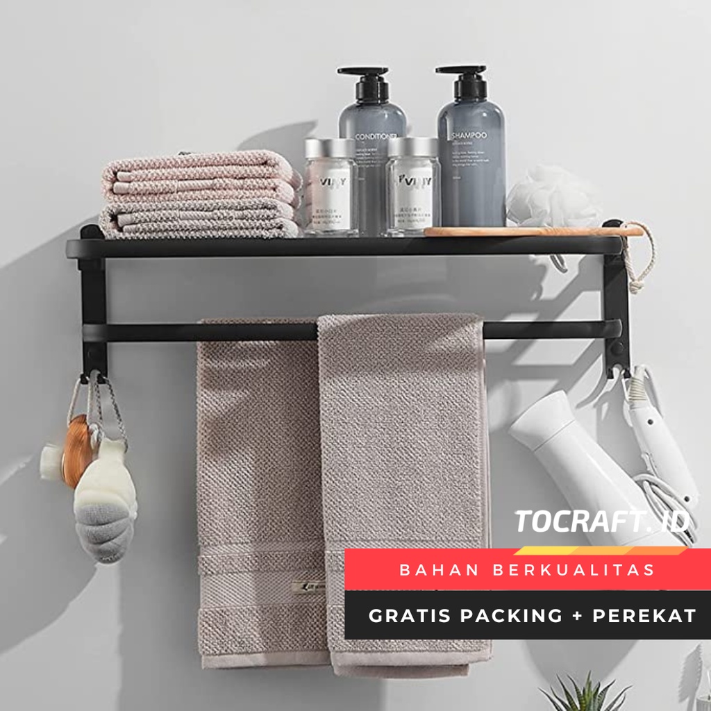 TCID Rak Handuk Gantungan Baju 2 Tingkat Tempel Tembok Kamar Mandi Tet Hitam Doff Minimalis