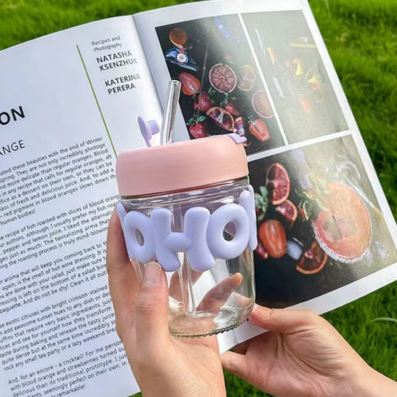 VOOVA Glass Tumblr Aesthetic Botol Minum Transparan Infused Water Botol Minum Sedotan Lipat Botol Minum Buah